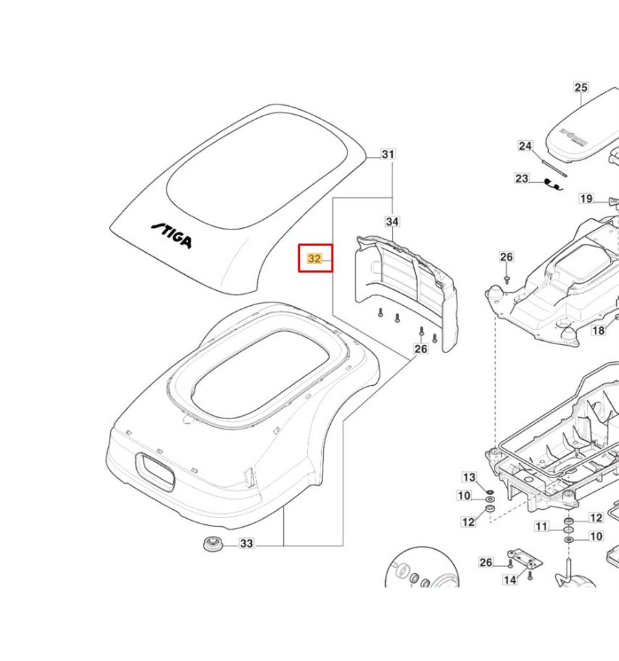 Original Stiga Kaross övre, A750, A1000, A1500 m.fl 381119737/0
