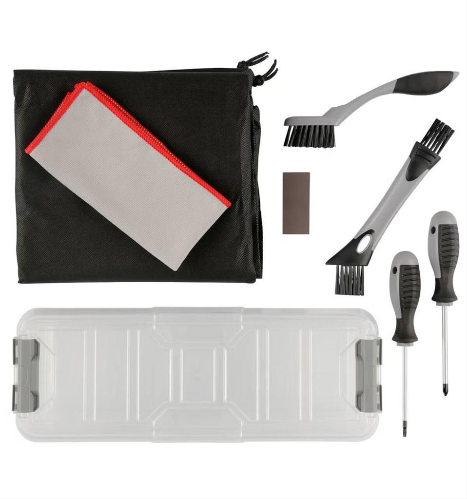 Rengörings- och underhållskit för robotgräsklippare - innehåller borstar, mejslar och slipsvampar för att hålla gräsklipparen i trim.